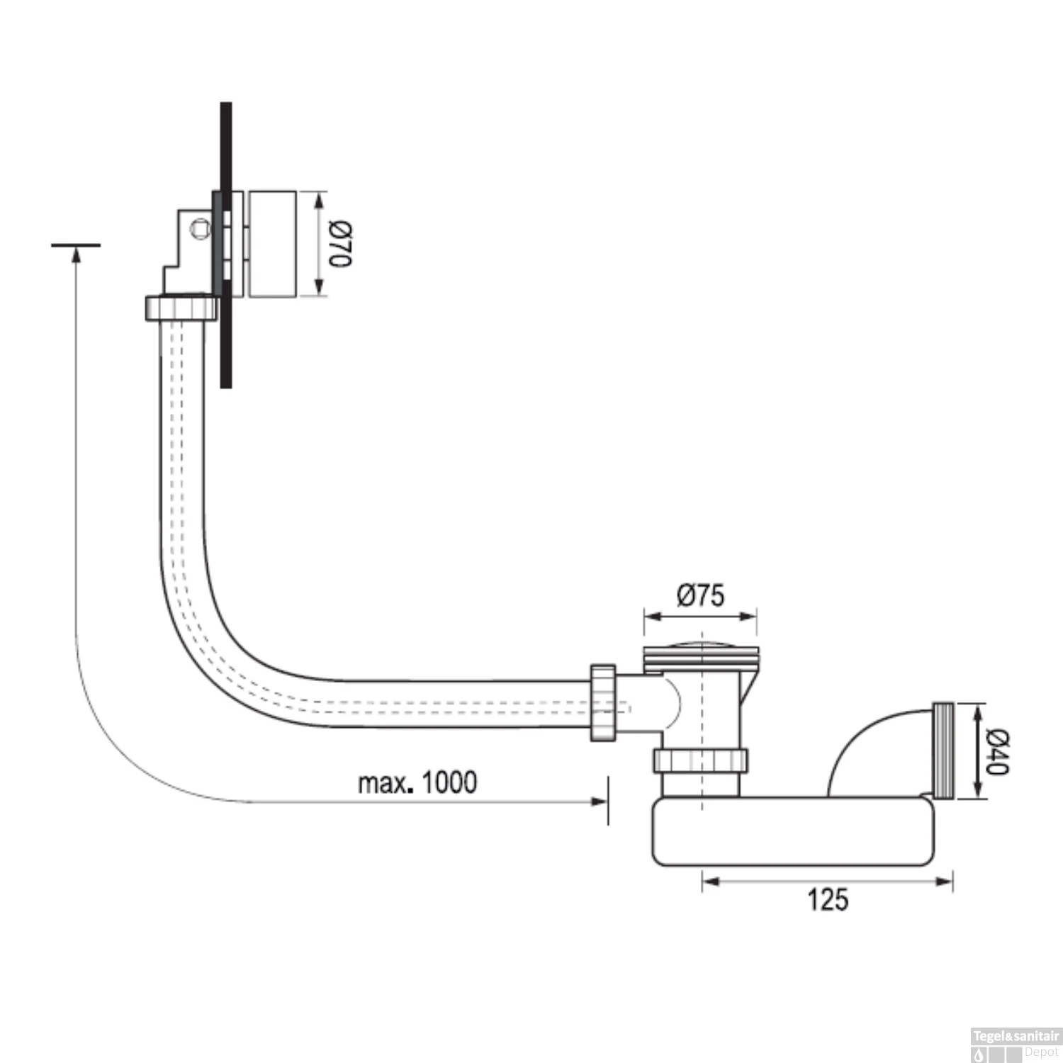 De vuller bedient u met een thermostaat en stopkraan. Deze zijn niet inbegrepen. De afvoerslang heeft een lengte van 100 cm.