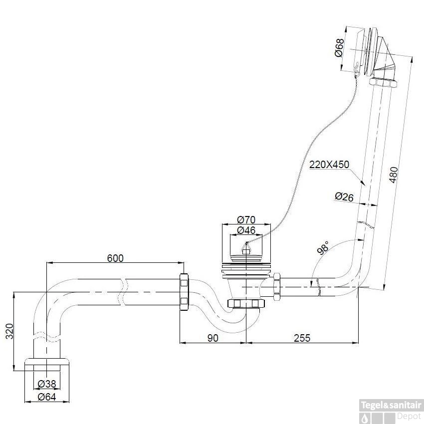 Een Badafvoer / overloopcombinatie speciaal voor de Nostalgisch Baden van Best Design.