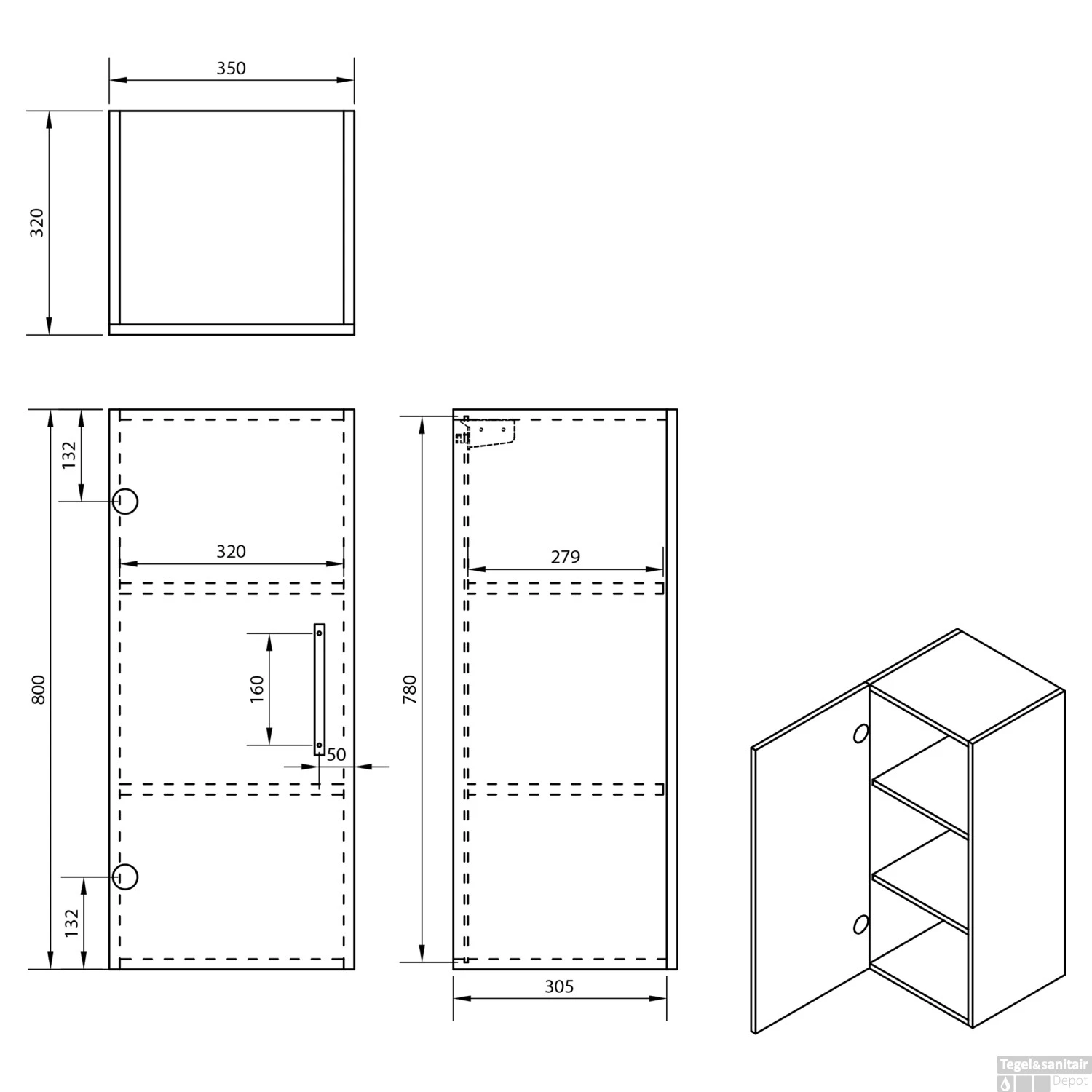 Specificaties Badkamerkast Differnz Hilde 80x35x32cm Hoogglans Wit: