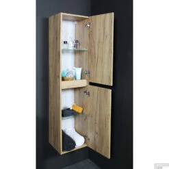 De badkamerkast Hilde maakt het badmeubel uit dezelfde serie helemaal compleet. De hoge kast is ook verkrijgbaar in een andere kleuren.