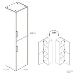 Badkamerkast Differnz Style 33x35x165 Cm Grijs Eiken (Rechts)