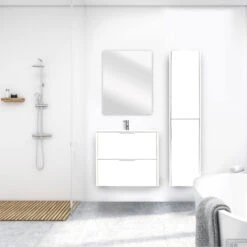 Badkamerkast Allibert Santiago Kolom 2 Deurs Soft Close Glanzend Alpen Wit 40x156x37 Cm