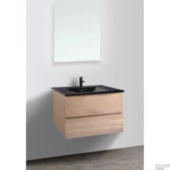 Badkamermeubel Casajoy Boston 80x46x55cm Eiken Met Keramieken Wastafel Zwart