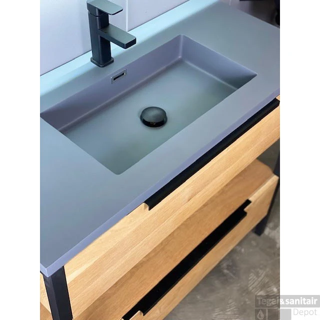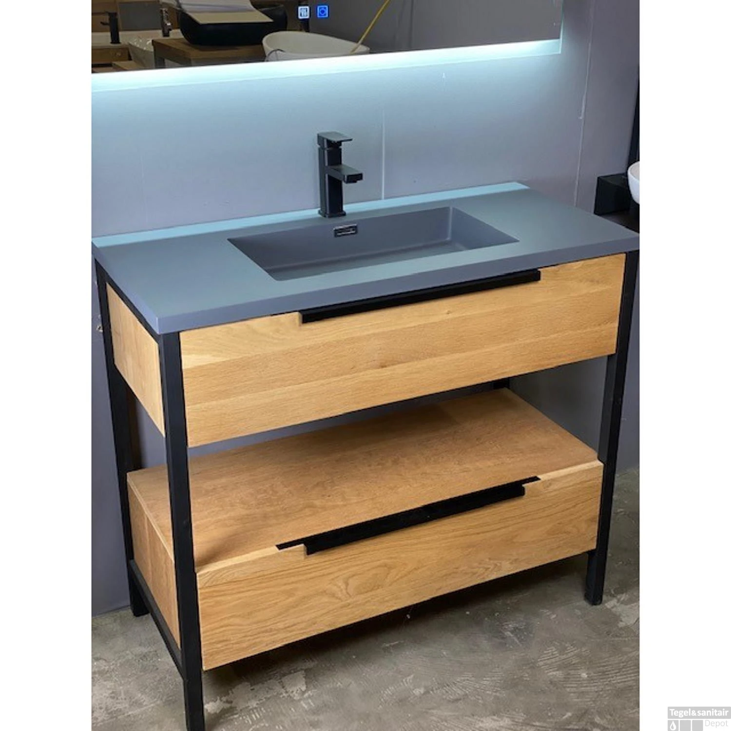 Badkamermeubel Casajoy Texas 100x46x90cm Eiken Met Artificial Stone Wastafel Grijs