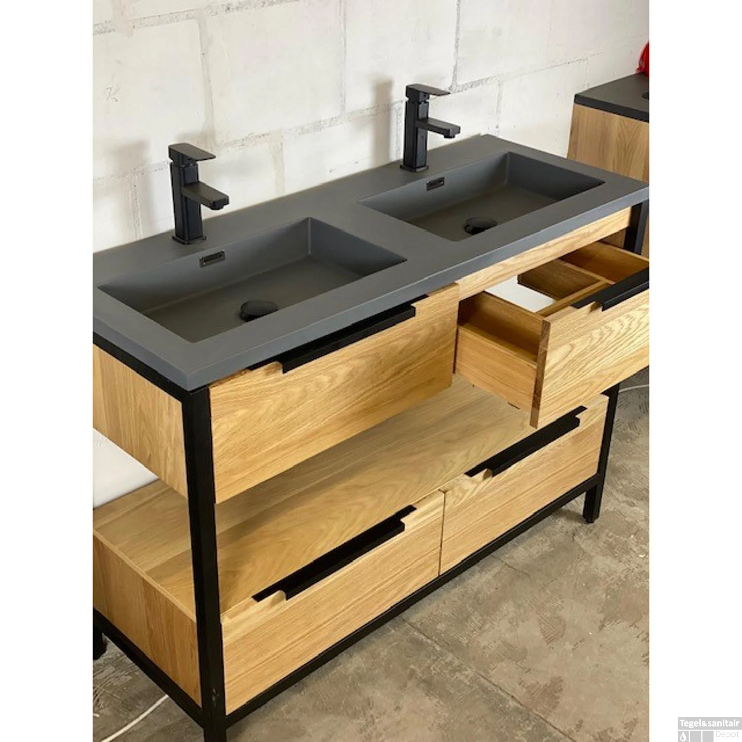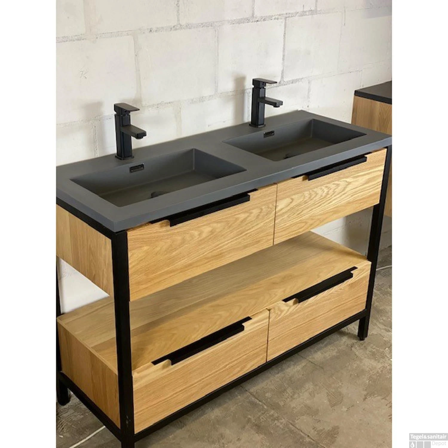 Badkamermeubel Casajoy Texas 120x46x90cm Eiken Met Artificial Stone Wastafel Grijs