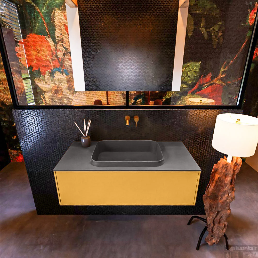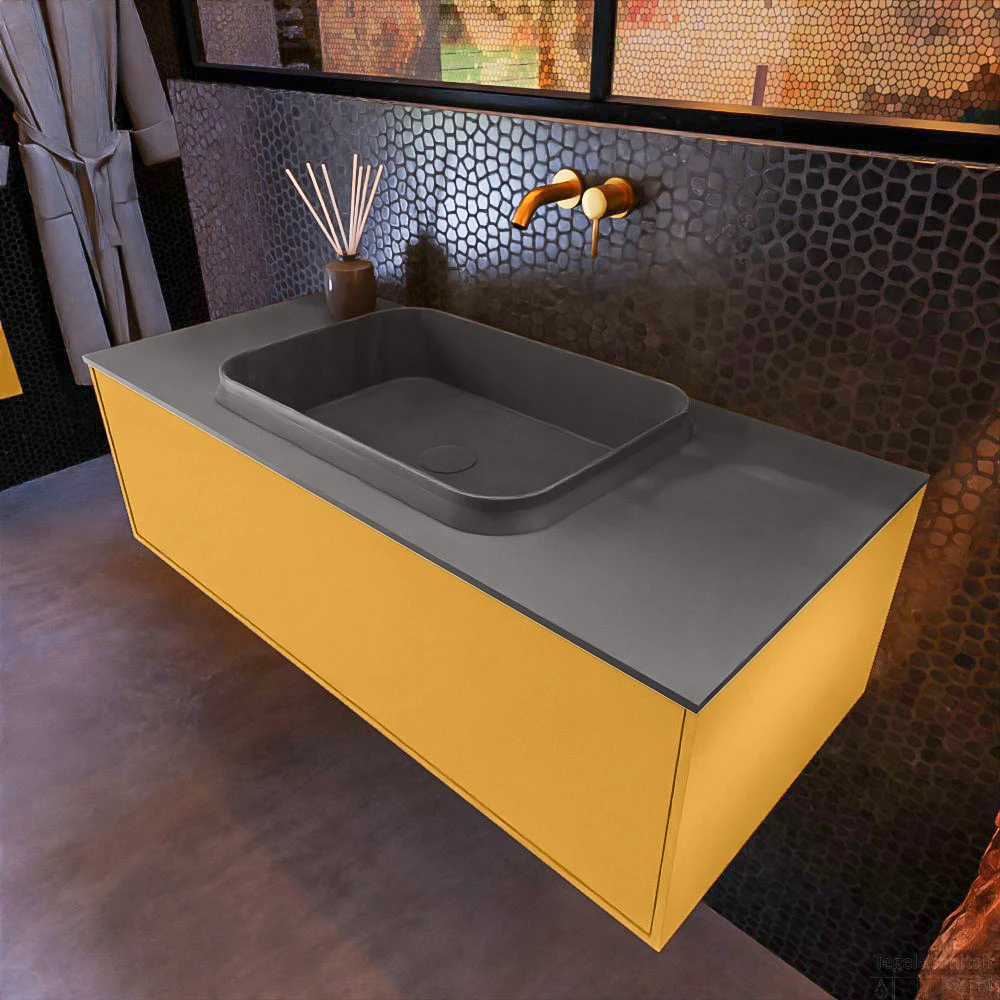 Badkamermeubelset Mondiaz Erin 100 cm met 1 Lade met RIDGE Wastafel Midden Dark grey Zonder Kraangaten Greeploos Mat Ocher