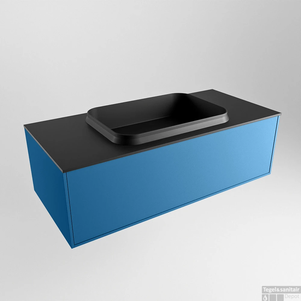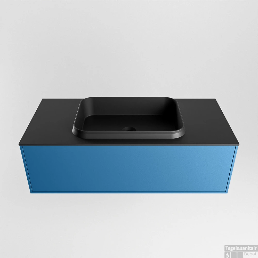 Badkamermeubelset Mondiaz Erin 100 cm met 1 Lade met RIDGE Wastafel Midden Urban met 1 kraangat Greeploos Mat Jeans