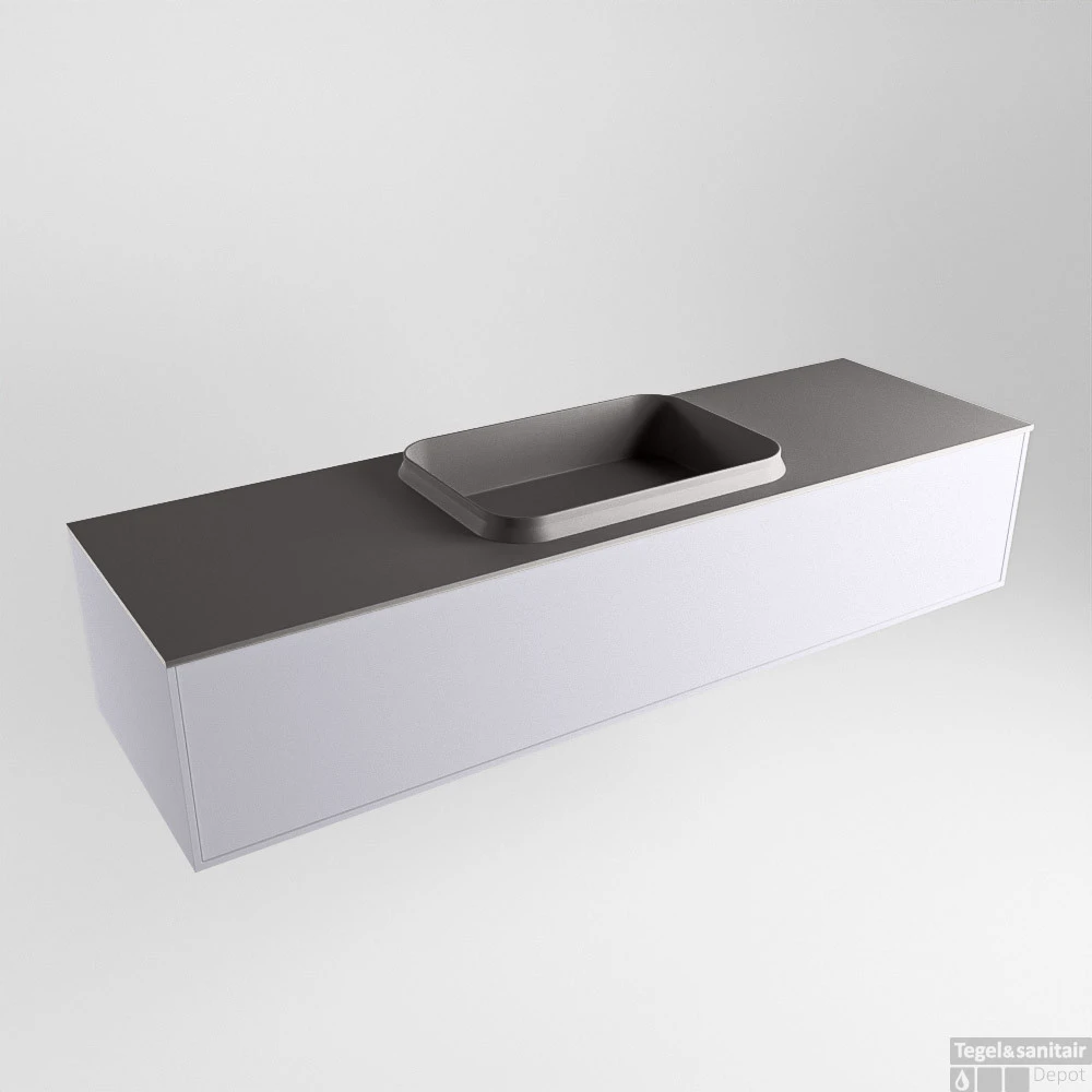 Badkamermeubelset Mondiaz Erin 150 cm met 1 Lade met RIDGE Wastafel Midden Dark grey met 1 kraangat Greeploos Mat Cale
