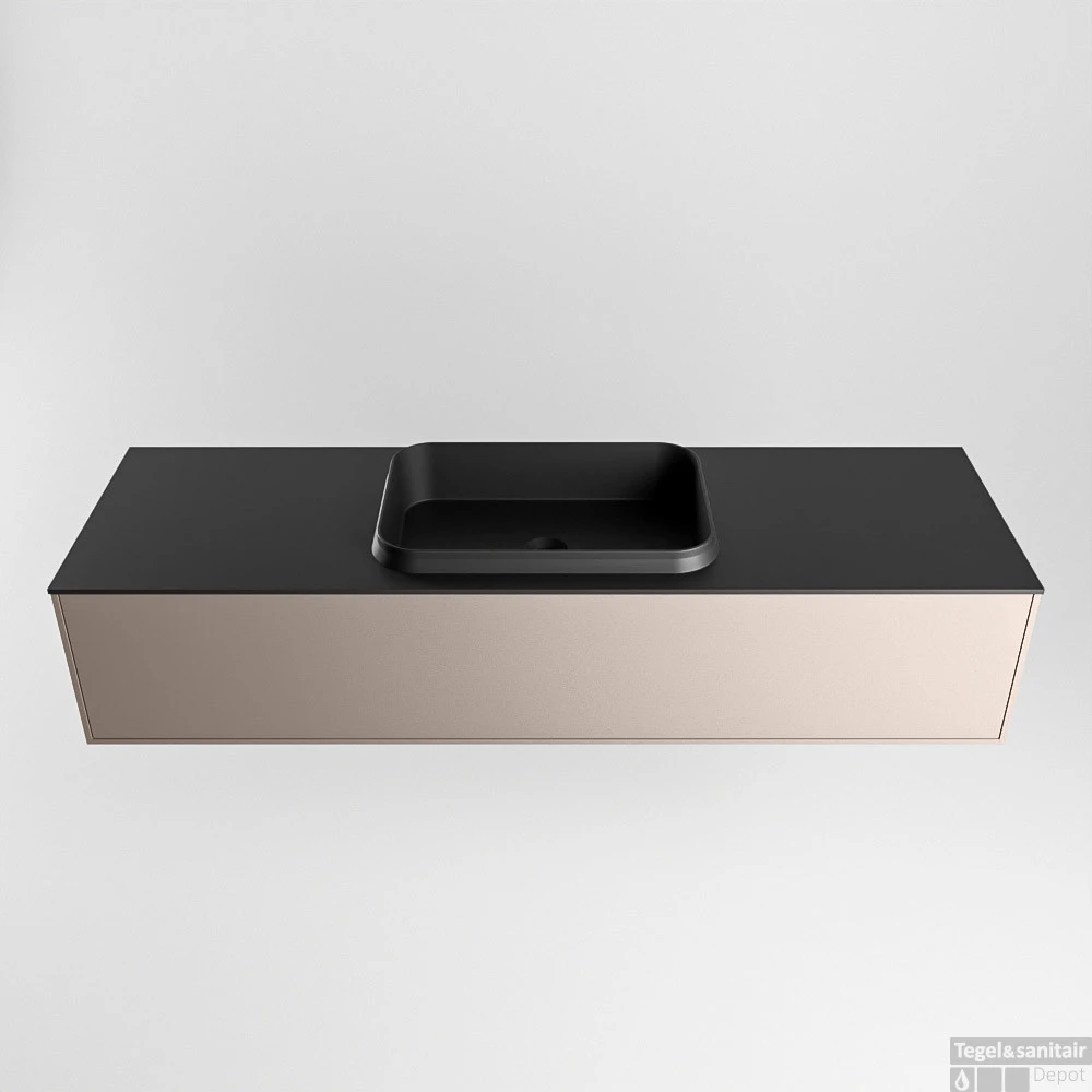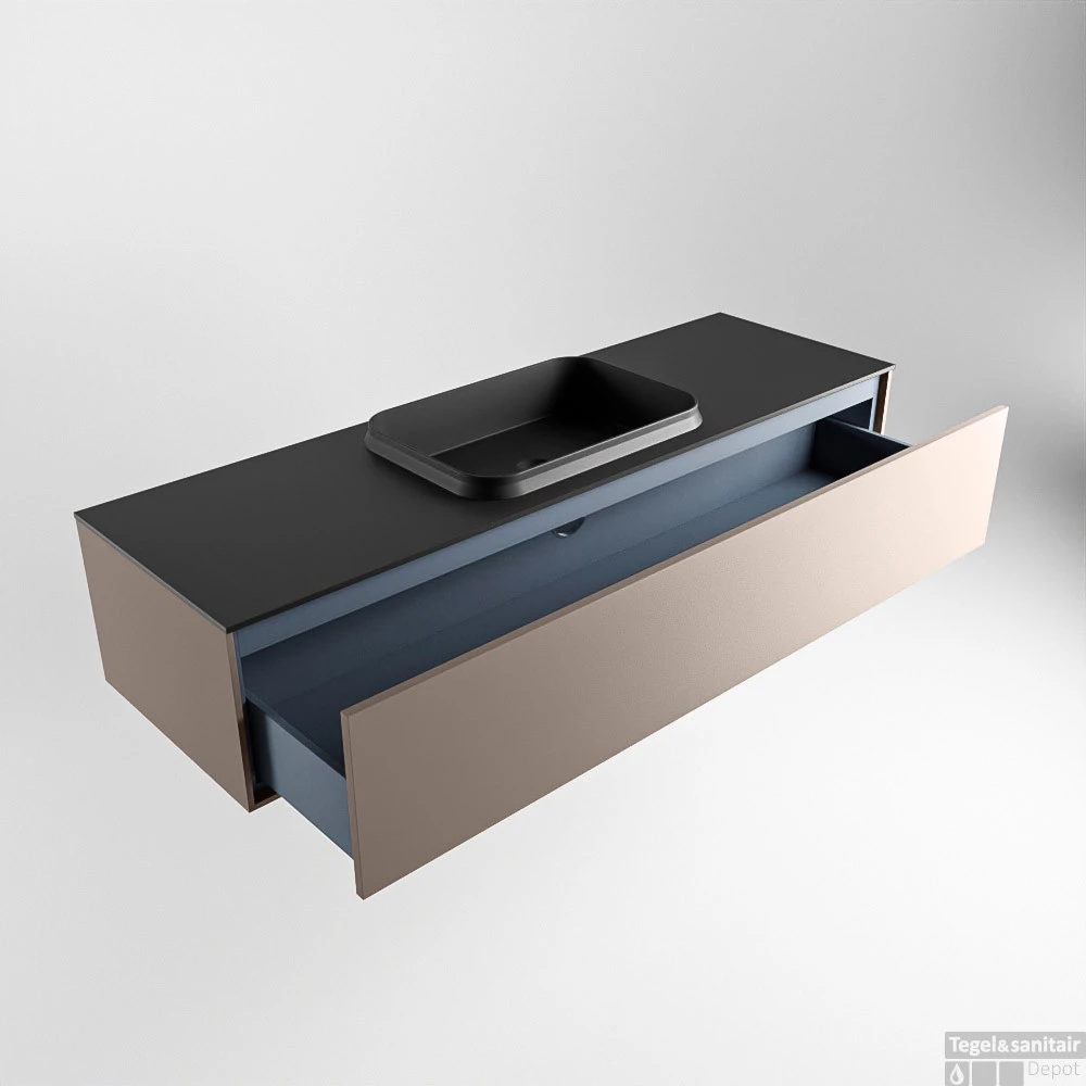 Badkamermeubelset Mondiaz Erin 150 cm met 1 Lade met RIDGE Wastafel Midden Urban met 1 kraangat Greeploos Mat Smoke