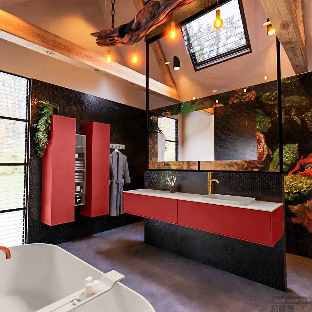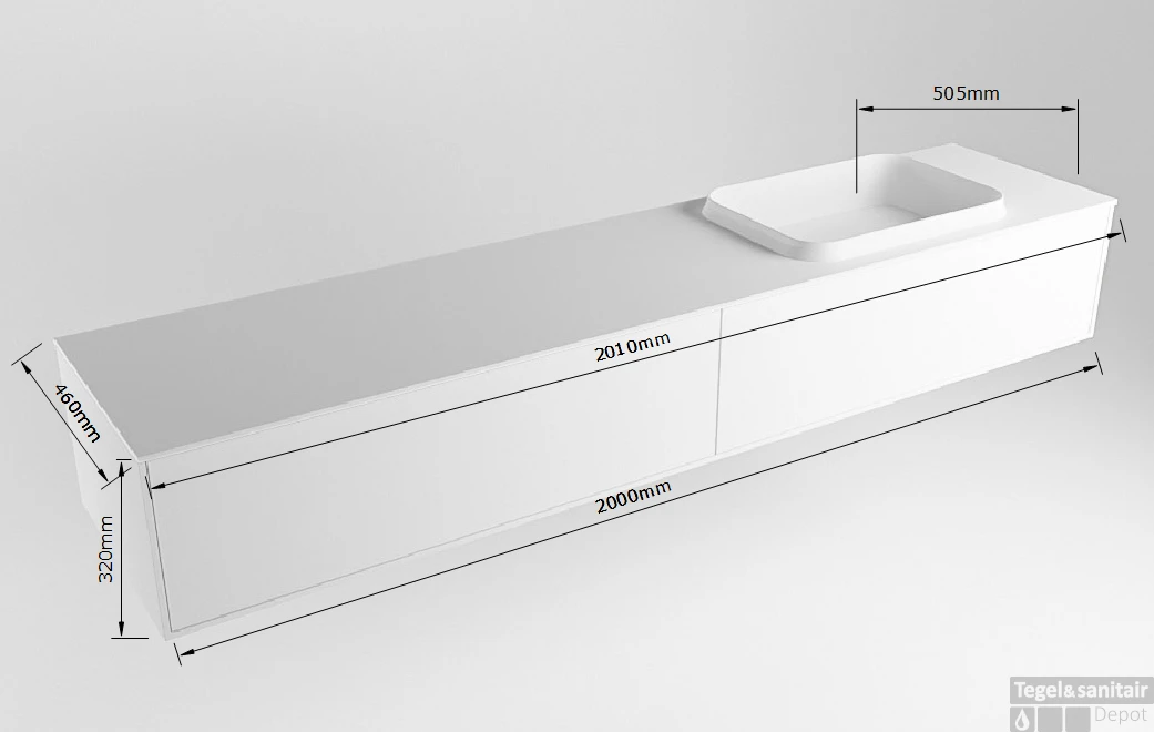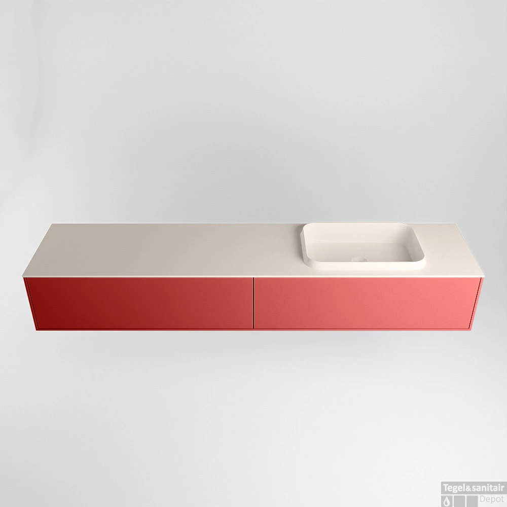Badkamermeubelset Mondiaz Erin 200 cm met 2 Lades met RIDGE Wastafel Rechts Linen met 1 kraangat Greeploos Mat Fire