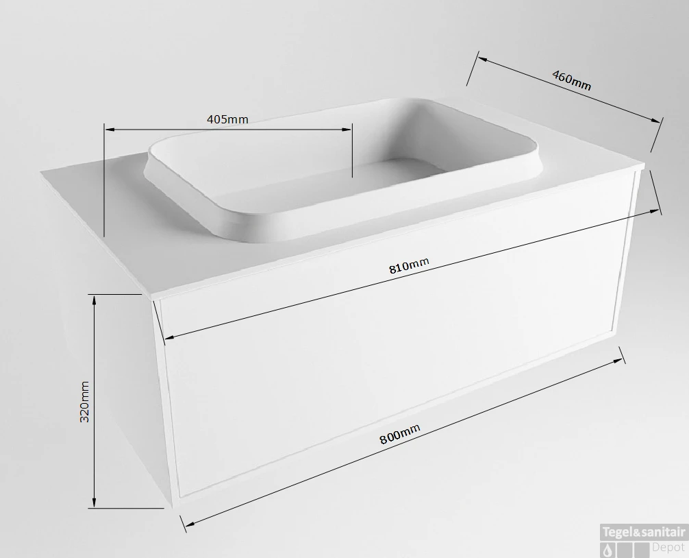 De inleg wastafel heeft een opstaande rand met een extra grote en diepe waskom. De ronde vormen van de waskom stralen een luxe zachtheid uit. De plek van de wastafelkraan op de hoek van de waskom geeft een extra speels effect. Het badmeubel van de set ERIN heeft een push to open lade. Zo heeft het badmeubel een mooie en gestroomlijnde uitstraling passend voor in elke badkamerstijl. Het badmeubel op deze afbeeldingen is de ERIN 80cm met onderkast in de kleur Urban met 1 lade(s). In deze serie hebben wij al meer dan 2500 variaties voor jou samengesteld.
