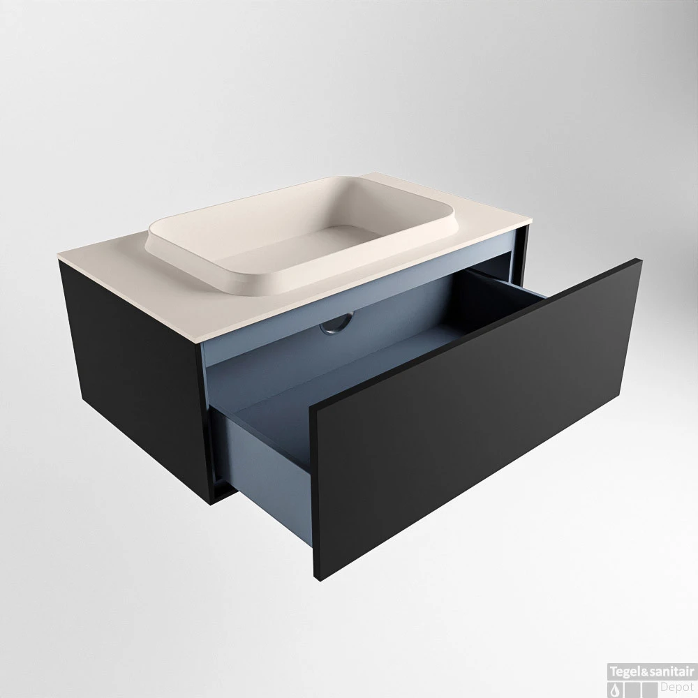 Badkamermeubelset Mondiaz Erin 80 cm met 1 Lade met RIDGE Wastafel Midden Linen met 1 kraangat Greeploos Mat Urban