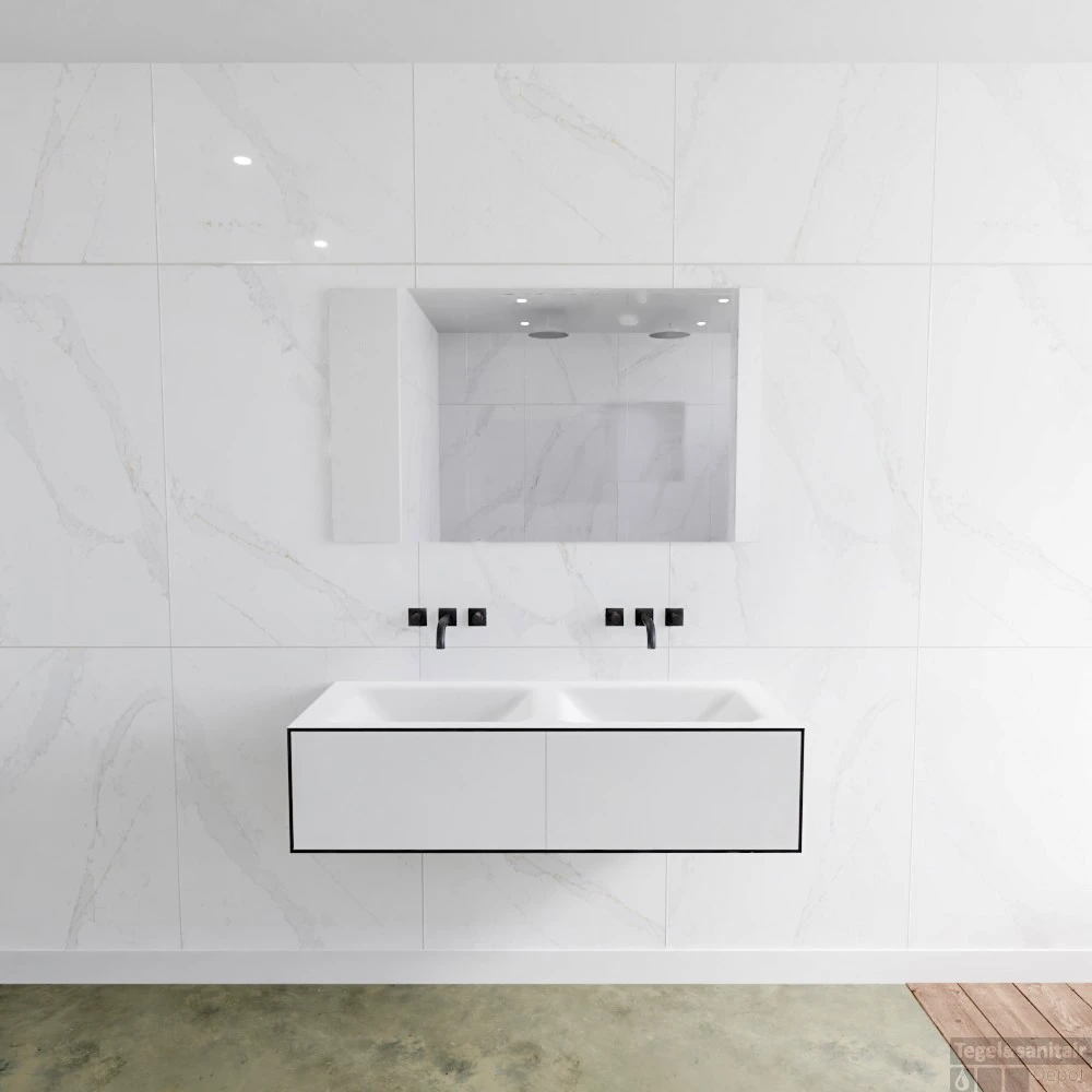 Badkamermeubelset Mondiaz LAGOM 120 cm Dubbele Wastafel Solid Surface Zonder Kraangaten Mat Zwart (2 laden)