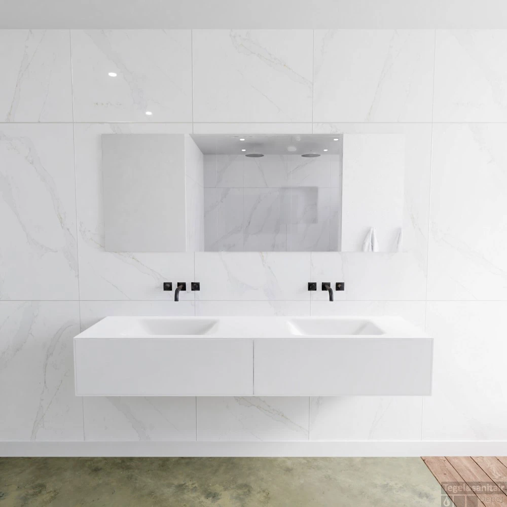 Badkamermeubelset Mondiaz LAGOM 180 cm Dubbele Waskom Solid Surface Zonder Kraangaten Mat Wit (2 laden)