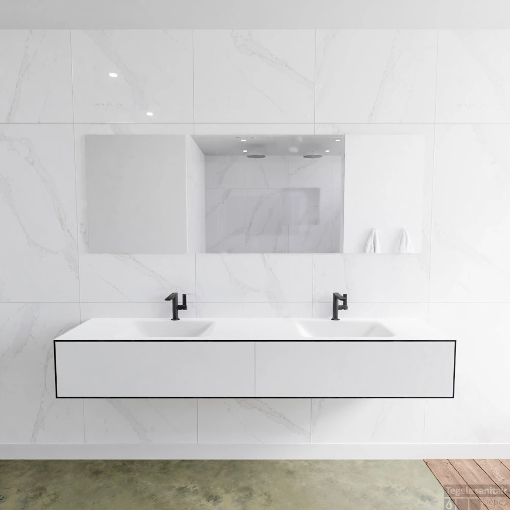 Badkamermeubelset Mondiaz LAGOM 200 cm Dubbele Wastafel Solid Surface met 2 Kraangaten Mat Zwart (2 laden)