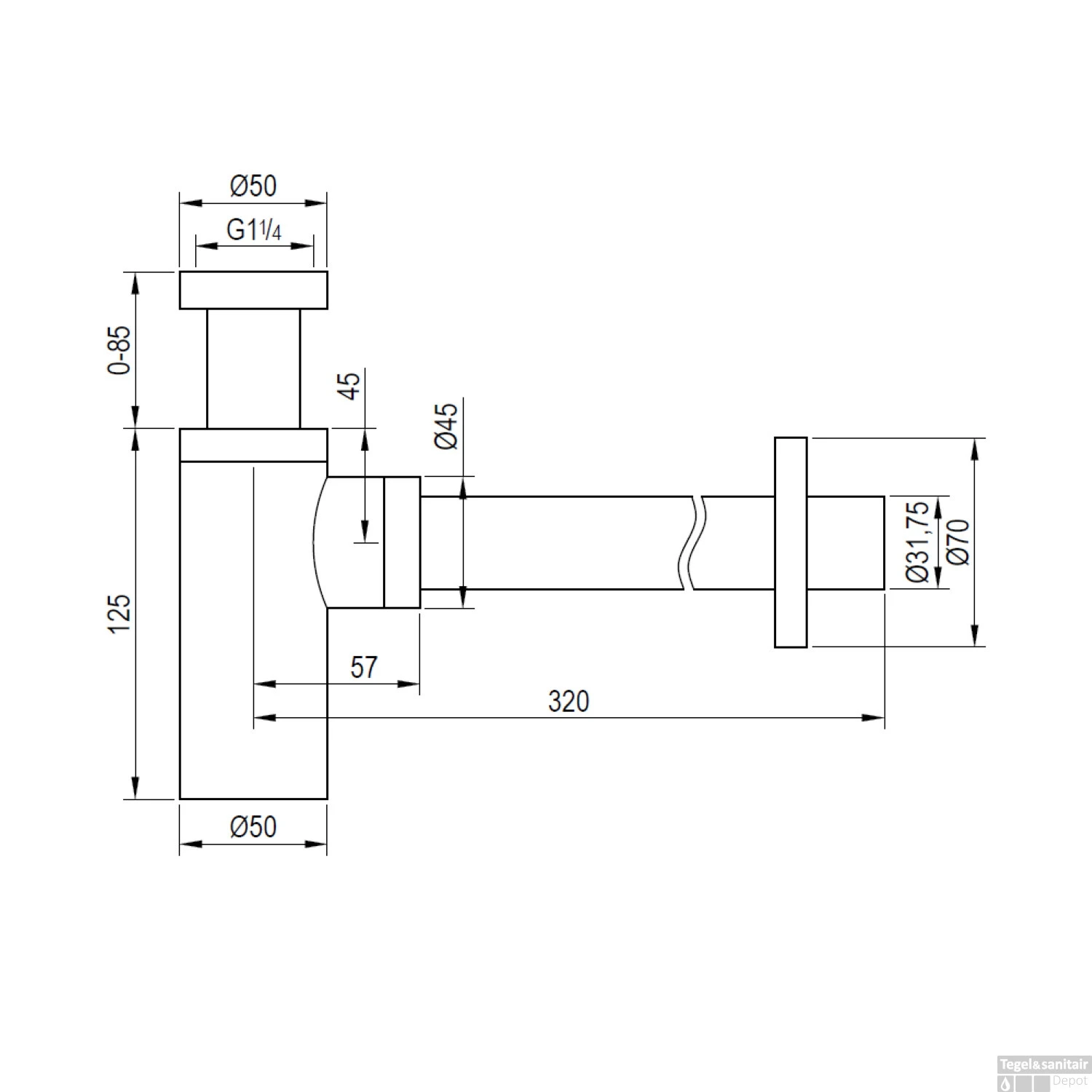 - Afmeting afvoer: 5/4″