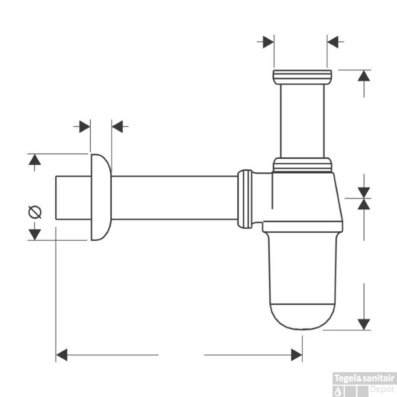 Specificaties BWS Bekersifon Chroom Rond Inclusief Muurbuis En Rozet 5/4 x 32mm: