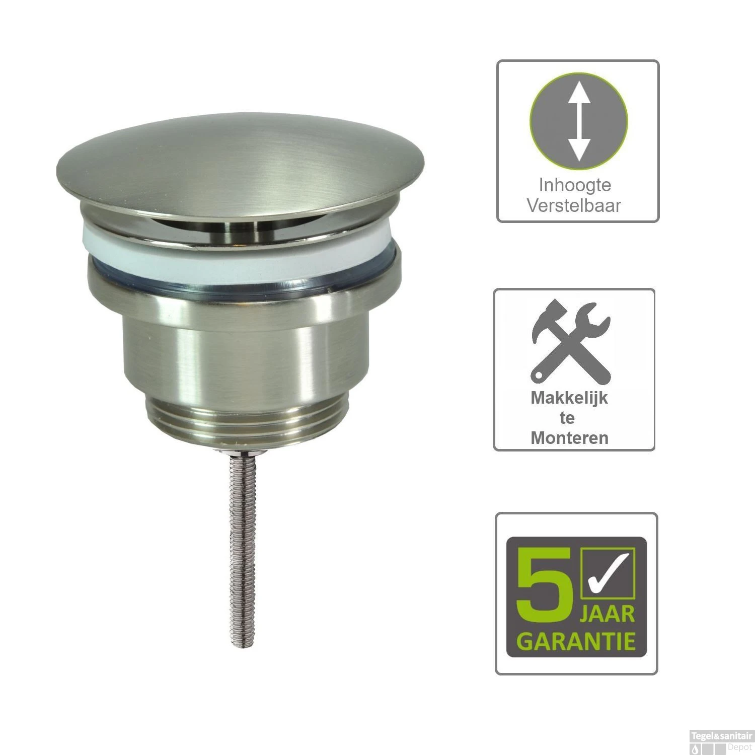 Specificaties BWS Luxe Vaste Waste niet Afsluitbaar 5/4 Verstelbaar RVS :