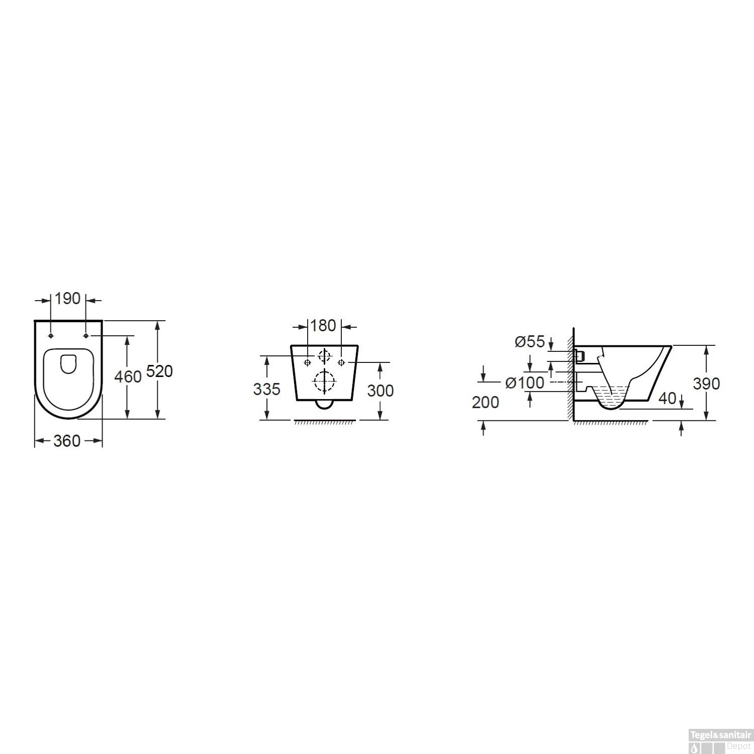 Specificaties BWS Wandcloset Vesta Rimless Diepspoel Inclusief Flatline Zitting Wit: