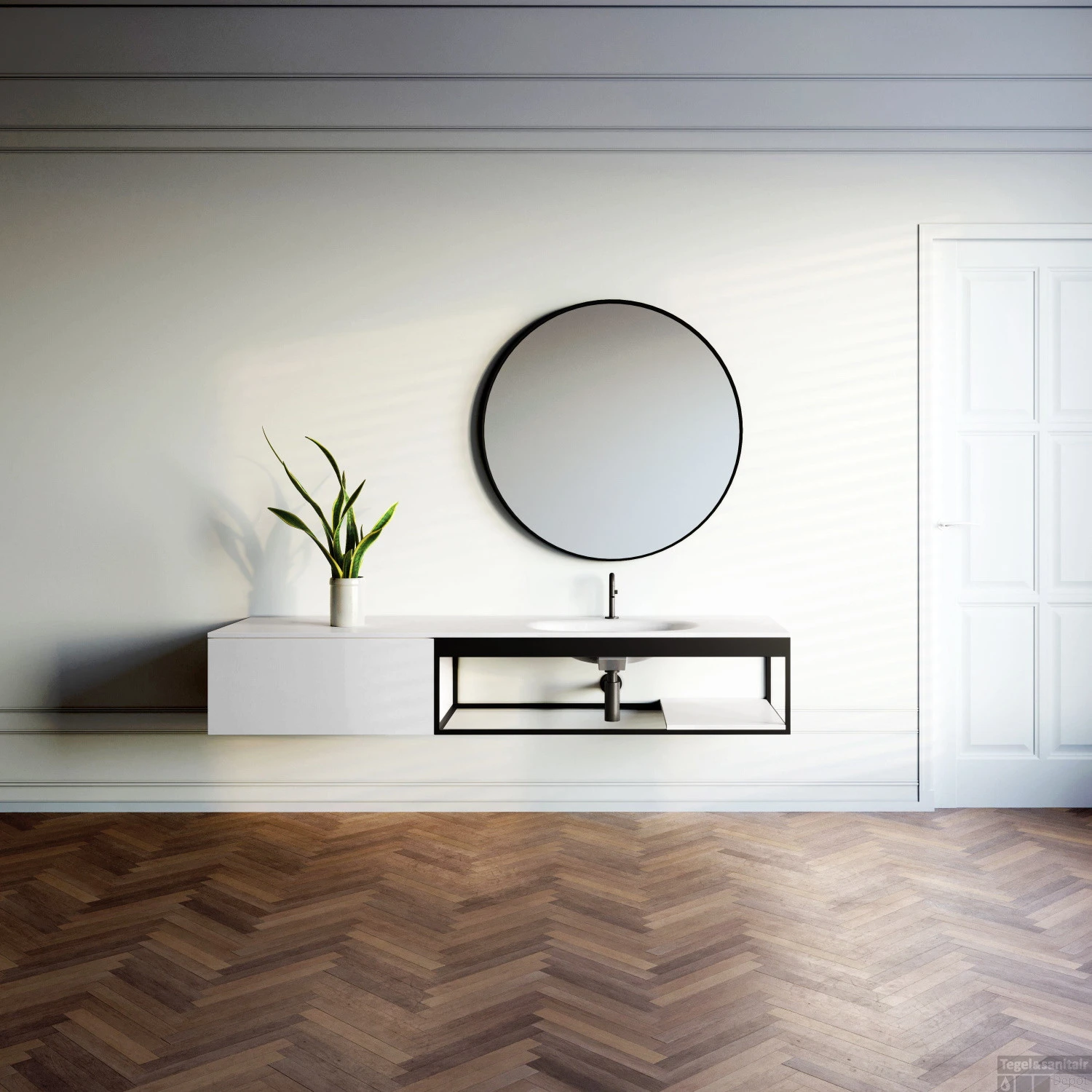Op zoek naar een nieuwe badmeubel voor in uw badkamer? Kies dan voor deze Hammock Frame kokerprofiel wastafelonderkast van het bekende merk Clou. De onderkast profiel is gemaakt van RVS en heeft een mat zwart poedercoating afwerking. Bij poedercoaten wordt een product van een kleur voorzien door deze in poedervorm op het product te smelten. Hierdoor ontstaat een kwalitatief hoogstaande, en bijzonder slijtvaste coating. Poedercoating gebruik geen water of oplosmiddelen om de verf aan te brengen. Hierdoor is deze techniek zeer milieuvriendelijk, en resulteert in een uitzonderlijk gale coating.