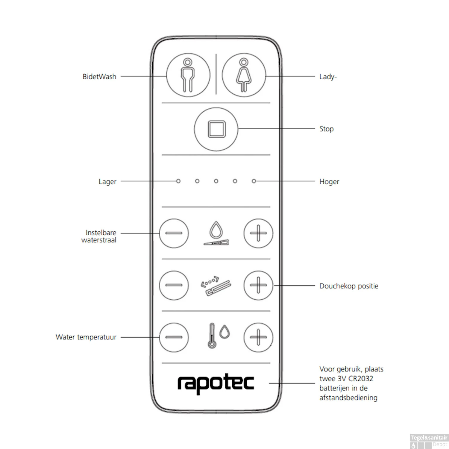 Douche WC RapoWash Basic met Bidetspoeler en Afstandsbediening Wit