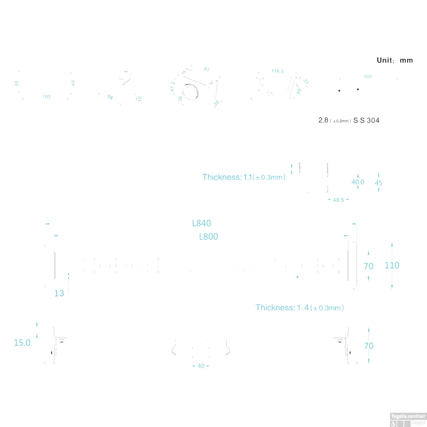 - – Geheel RVS-304 kleur zwart