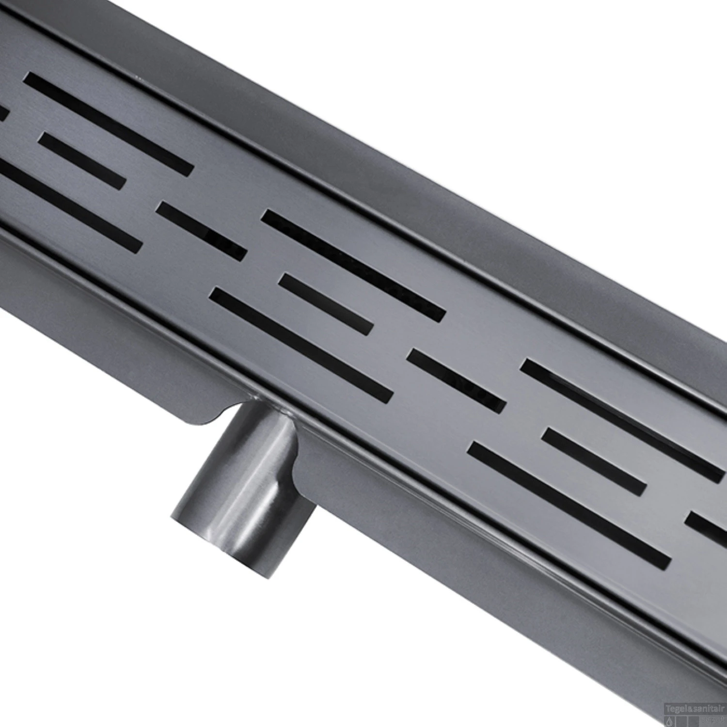 De douchegoot is voorzien van een gunmetal rooster. De douchegoot heeft een gunmetal uitvoering en maakt het verschil in uw badkamer. Het rooster valt op in uw douchecabine en in combinatie met andere gunmetal details maakt u het plaatje af. Het rooster is 80 centimeter lang en slechts 7 centimeter breed. Ook verkrijgbaar in 70, 90 en 100cm.