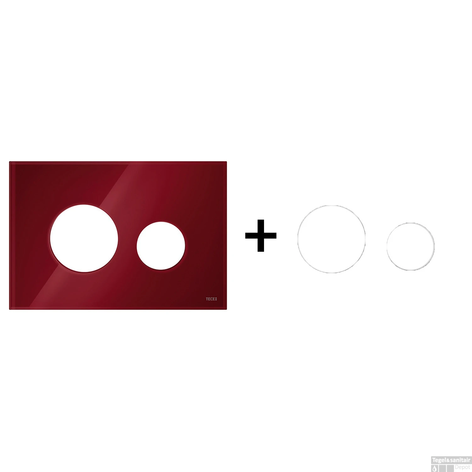 Specificaties Drukplaat Front En Toetsen TECE Loop Voor WC-Bediening Glas Robijnrood: