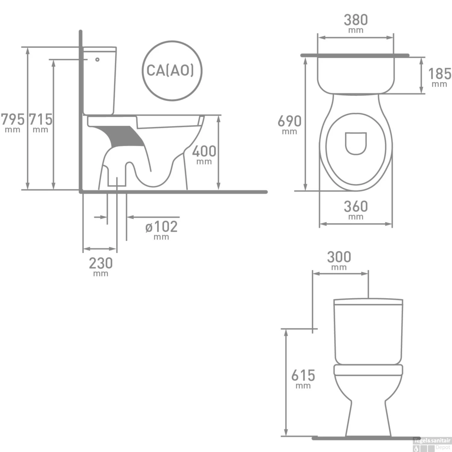 Het duoblok heeft een AO aansluiting. Bij de AO-aansluiting plaatst u het closet rechtstreeks op de afvoer in de vloer.