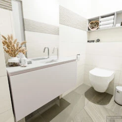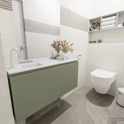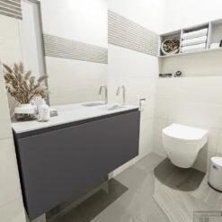MONDIAZ ANDOR 80cm Toiletmeubel Washed Oak. LEX 80cm Wastafel Urban Rechts Geen Kraangat
