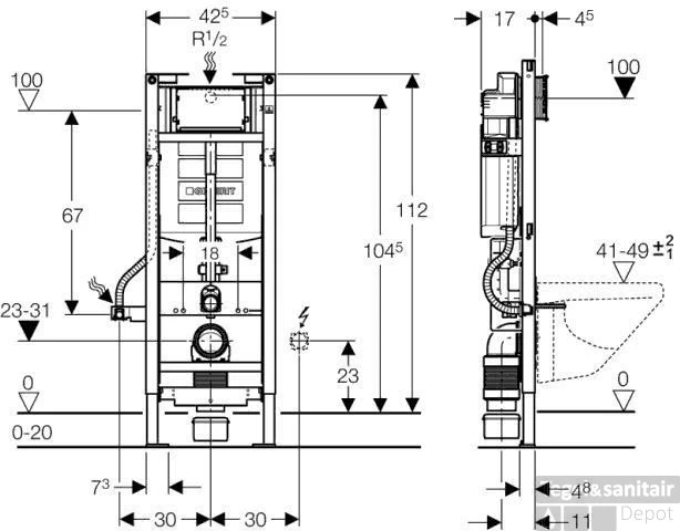 Specificaties Geberit Duofix Sigma Inbouwreservoir Up320 Max 8 cm Verstelbaar: