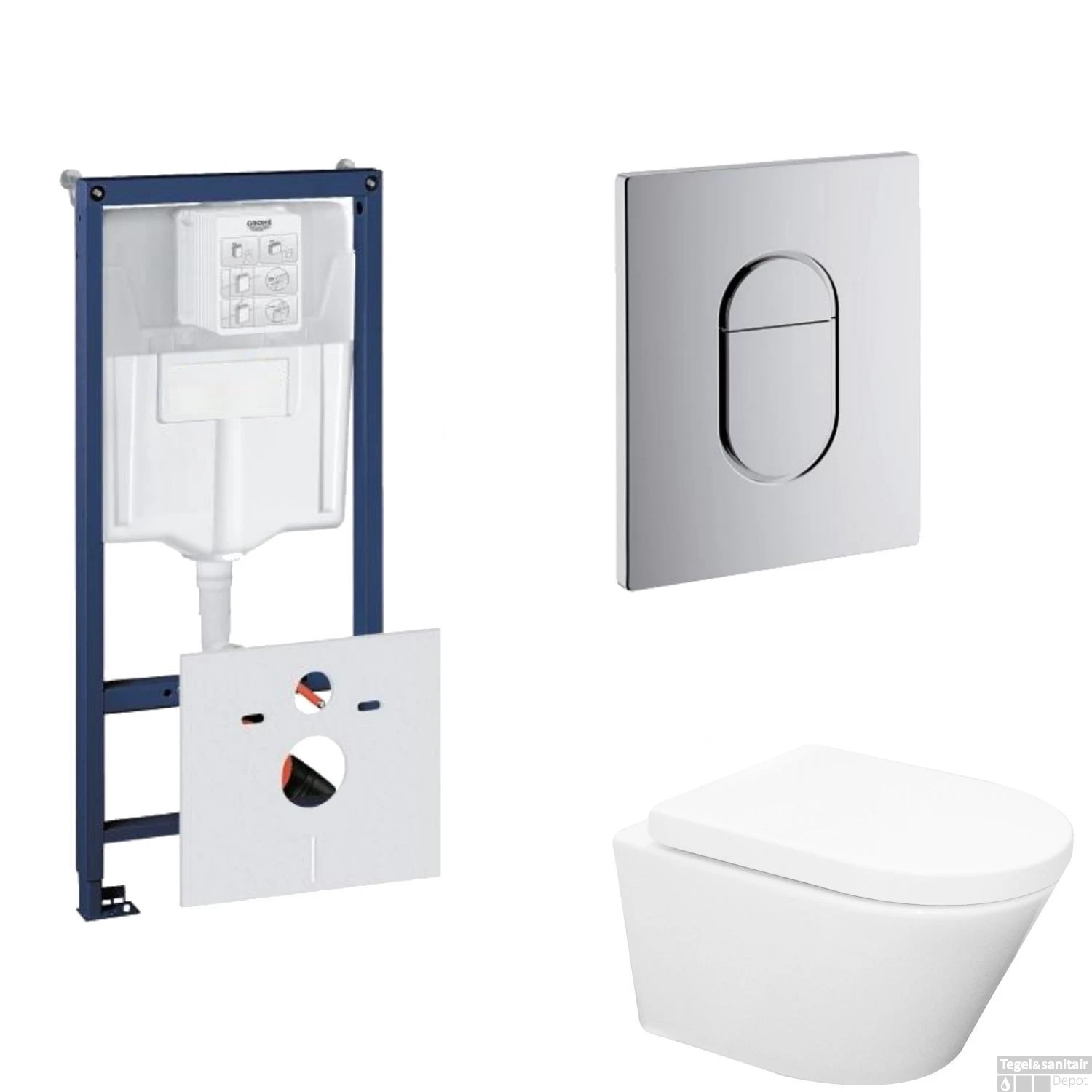 Grohe Rapid SL Toiletset set24 Wiesbaden Vesta Rimless 52 cm met Grohe Arena of Skate drukplaat