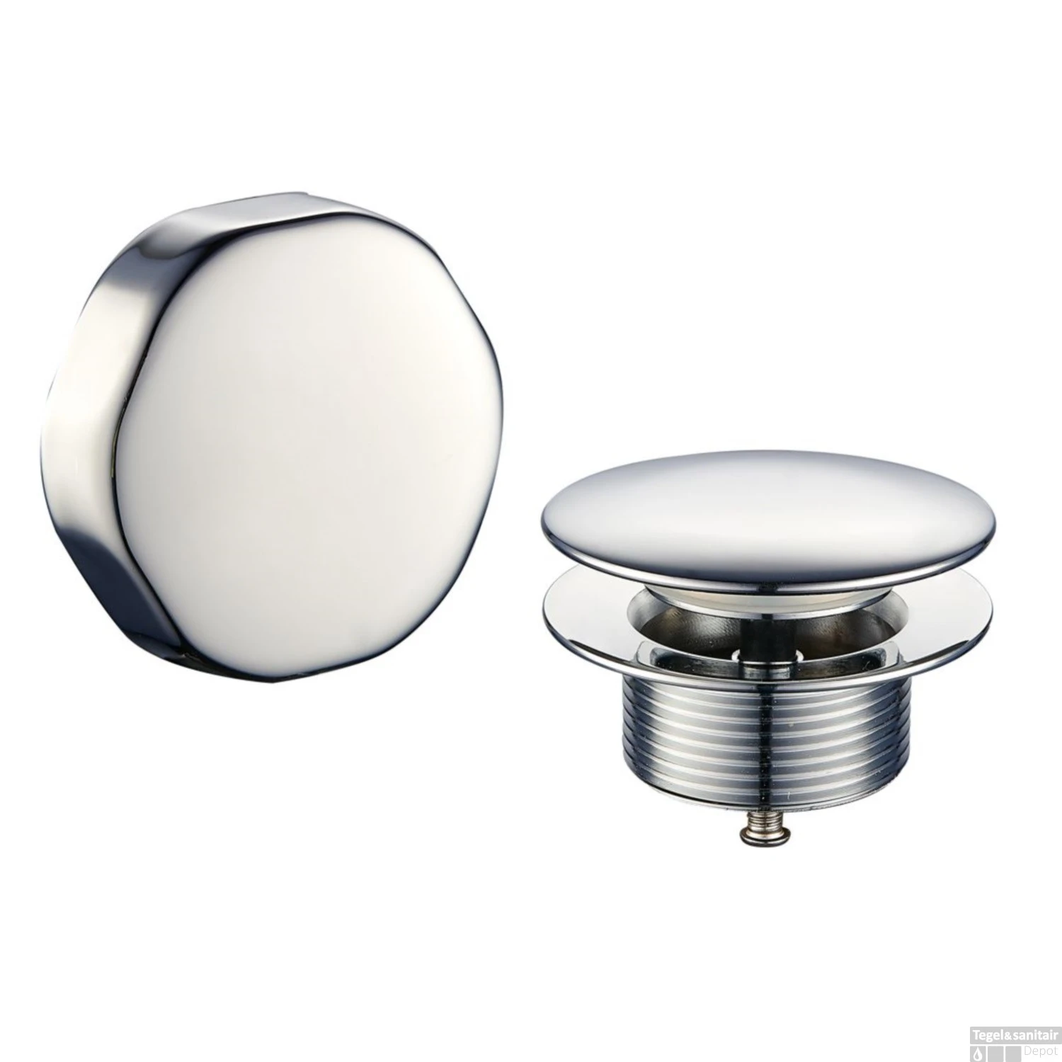 De badplug overloopcombinatie van Wiesbaden bevat geen badvul-functie. Het bad word gevuld door dit bedieningsknop in de kleur chroom. De badplug overloopcombinatie is eenvoudig te monteren op een inbouw-mengkraan.