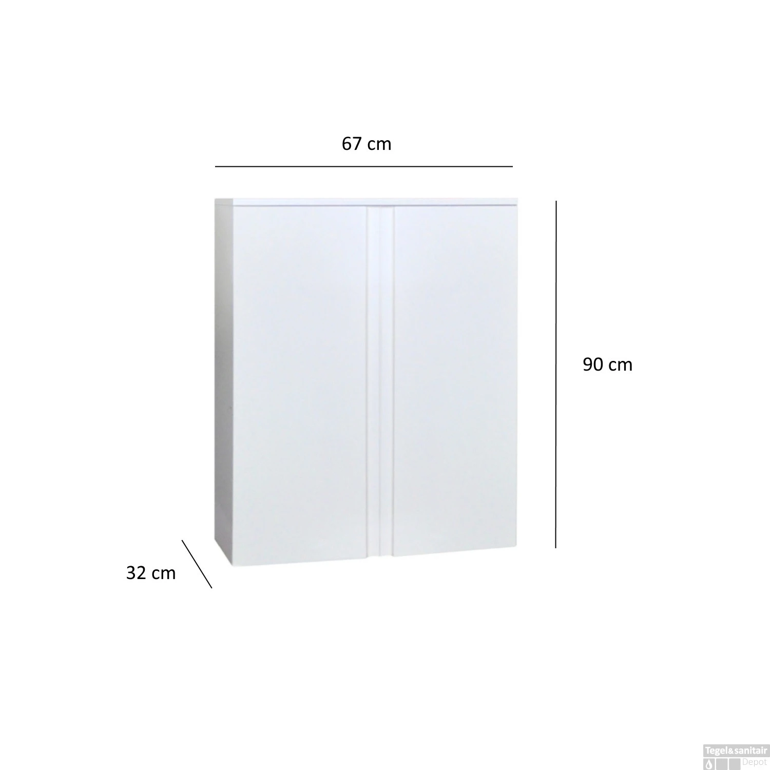 De kolomkast heeft een hoogte van 90 cm, een breedte van 67 cm en een diepte van 32 cm. De kast valt perfect te combineren met andere producten uit de Q7-serie van Sanicare. De kolomkast is afgewerkt in de kleur truffel.