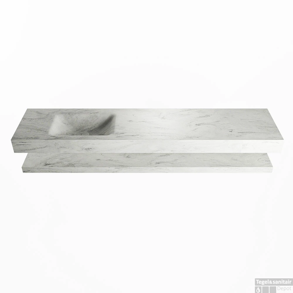Creëer een fantastische elegante uitstraling in uw badkamer met de badkamermeubel set Alan DLUX. De schitterende badmeubel set ALAN-DLUX bestaat uit een vrij hangende wastafel met zachte organische lijnen van CORIAN in gemarmerd Solid Surface gecombineerd met Solid surface planchet. De badkamermeubel set ALAN-DLUX is geschikt voor iedere badkamer of deze nu klein of groot is. Om uw badkamer helemaal compleet te maken zijn ook diverse accessoires in deze marmers verkrijgbaar. Zoals de nissen en spiegel planchetten.