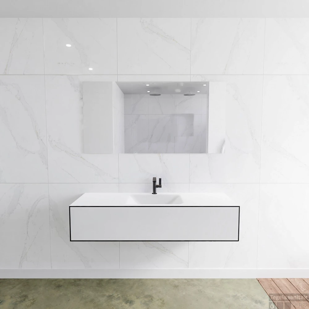 Zowel de ombouw, wastafel als het voorpaneel zijn van SOLID SURFACE. Je ziet hier de combinatie LAGOM 140cm badkamermeubel in de kleur urban met 1 lade. Wij hebben voor jouw gemak meer als 400 van de populairste combinaties toegevoegd. Alsof dat nog niet genoeg is kun je zelf bij de badkameronderkast meer als 65 duizend combinaties maken. De populaire meubels zijn samengesteld uit: