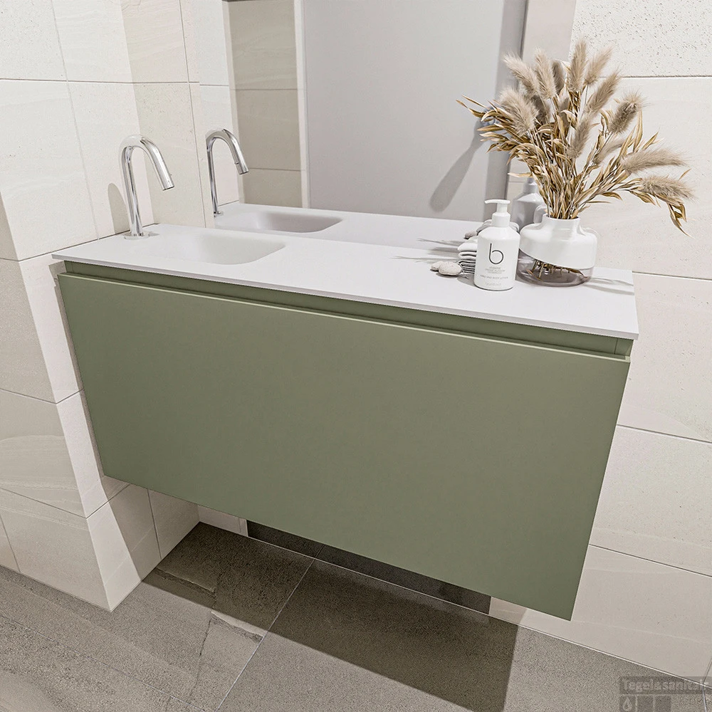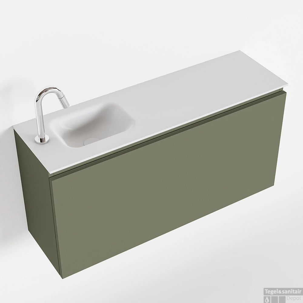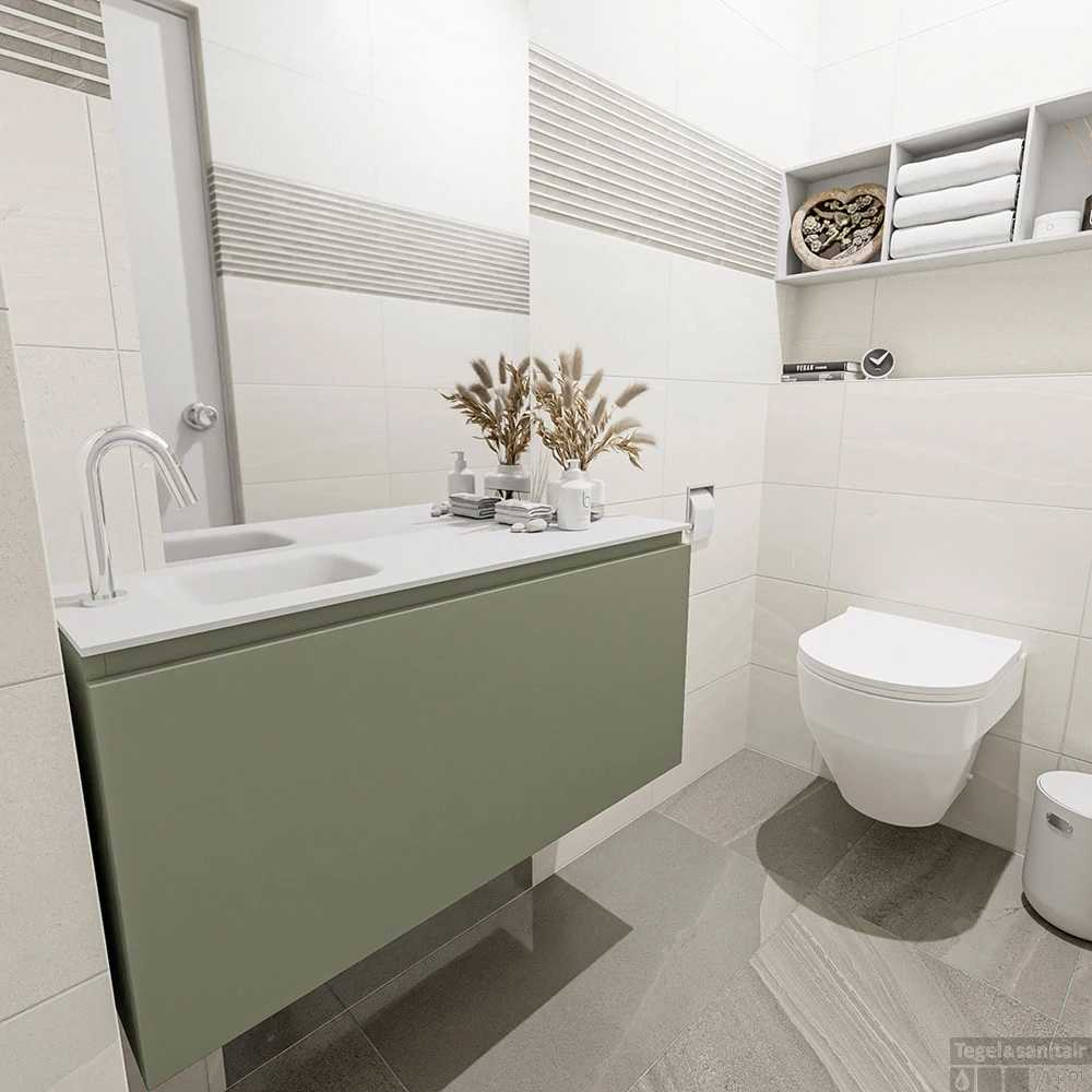 MONDIAZ MONDIAZ OLAN 100cm toiletmeubel army. LEX wastafel talc links 1 kraangat
