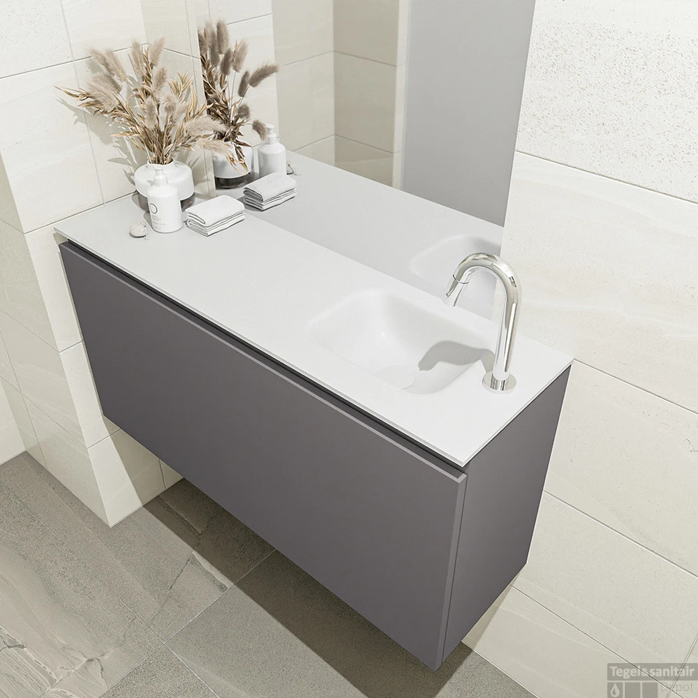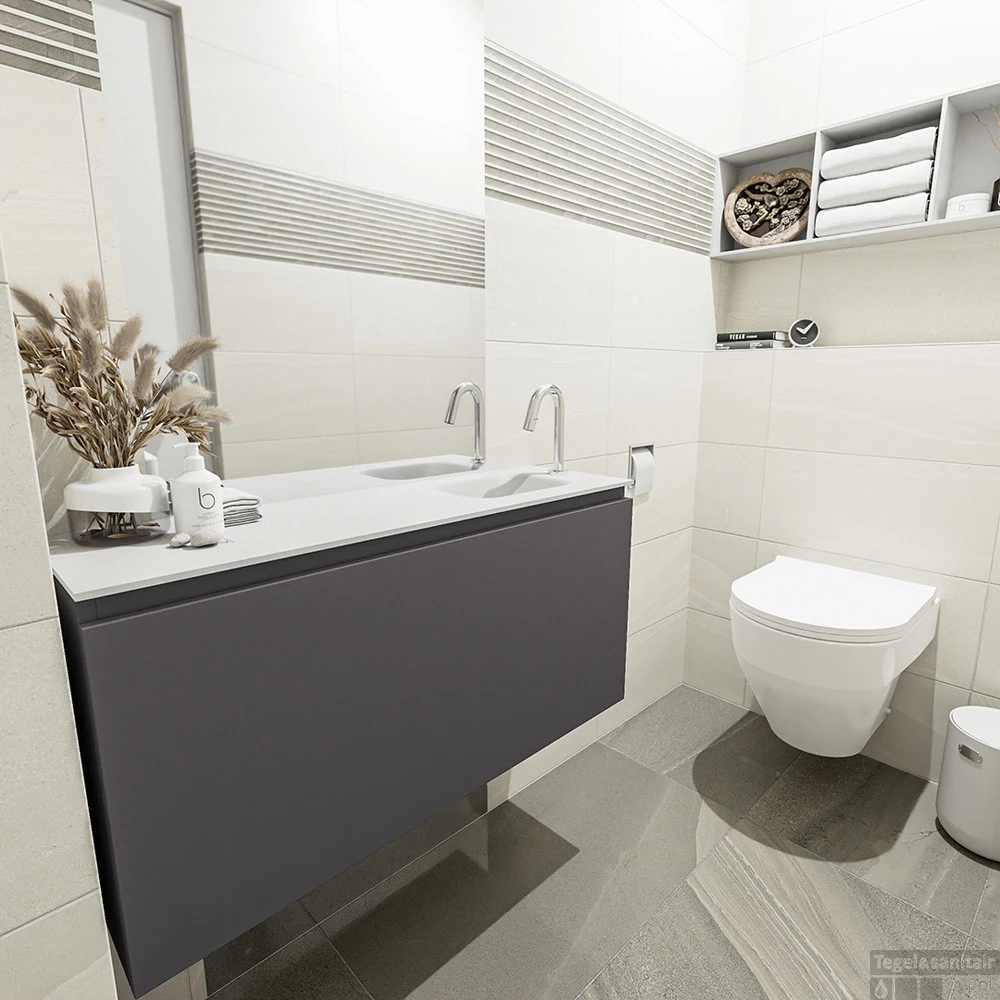 MONDIAZ MONDIAZ OLAN 100cm toiletmeubel dark grey. LEX wastafel talc rechts 1 kraangat