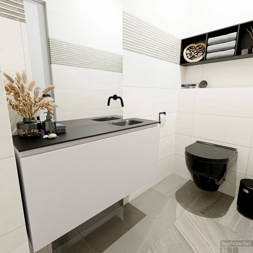 MONDIAZ MONDIAZ OLAN 100cm toiletmeubel linen. LEX wastafel urban rechts geen kraangat