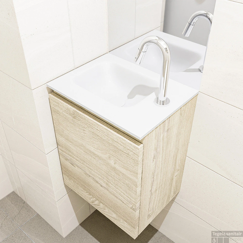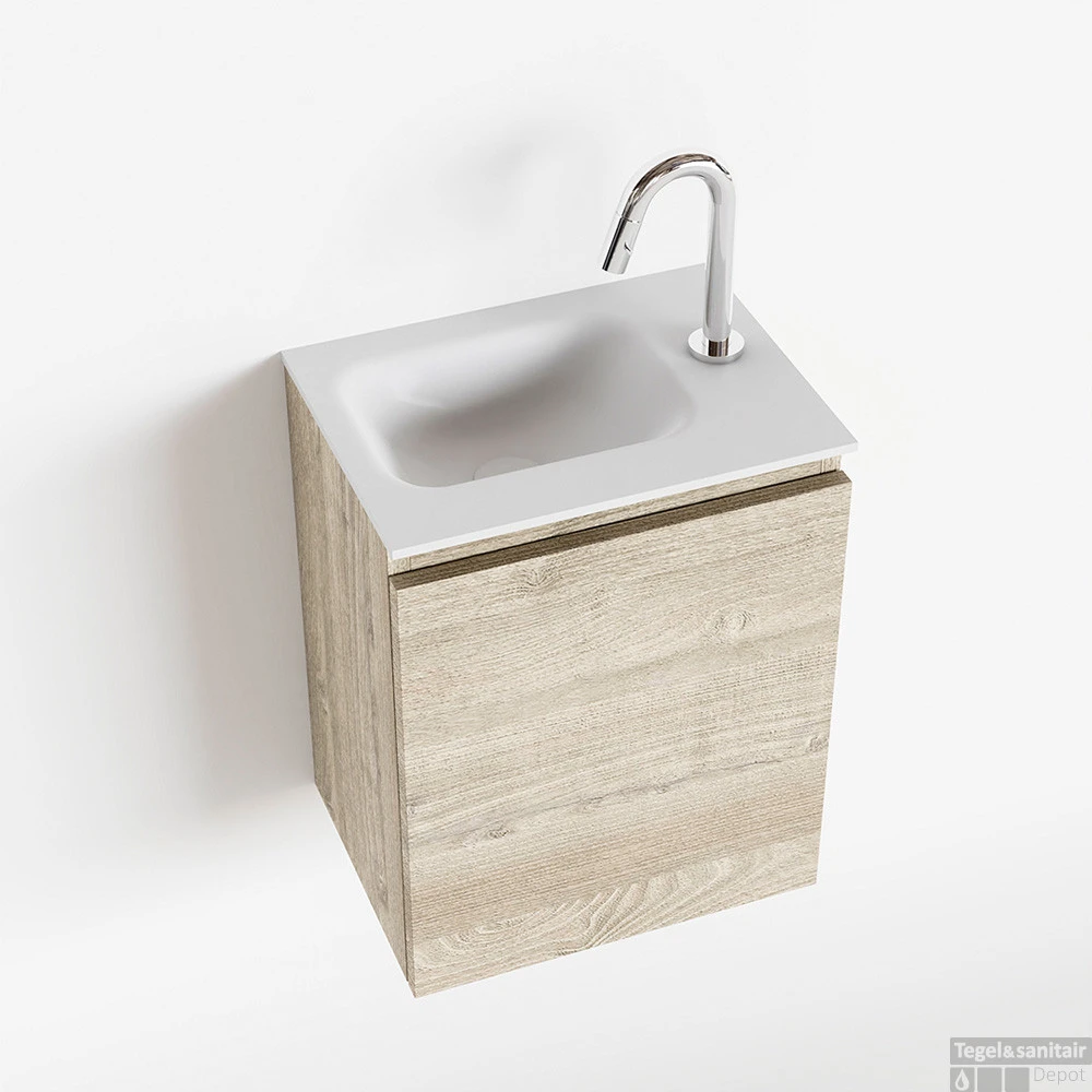 MONDIAZ MONDIAZ OLAN 40cm toiletmeubel light brown grey. LEX wastafel talc links 1 kraangat