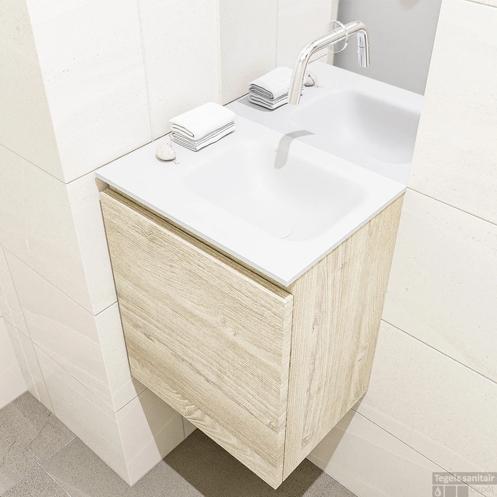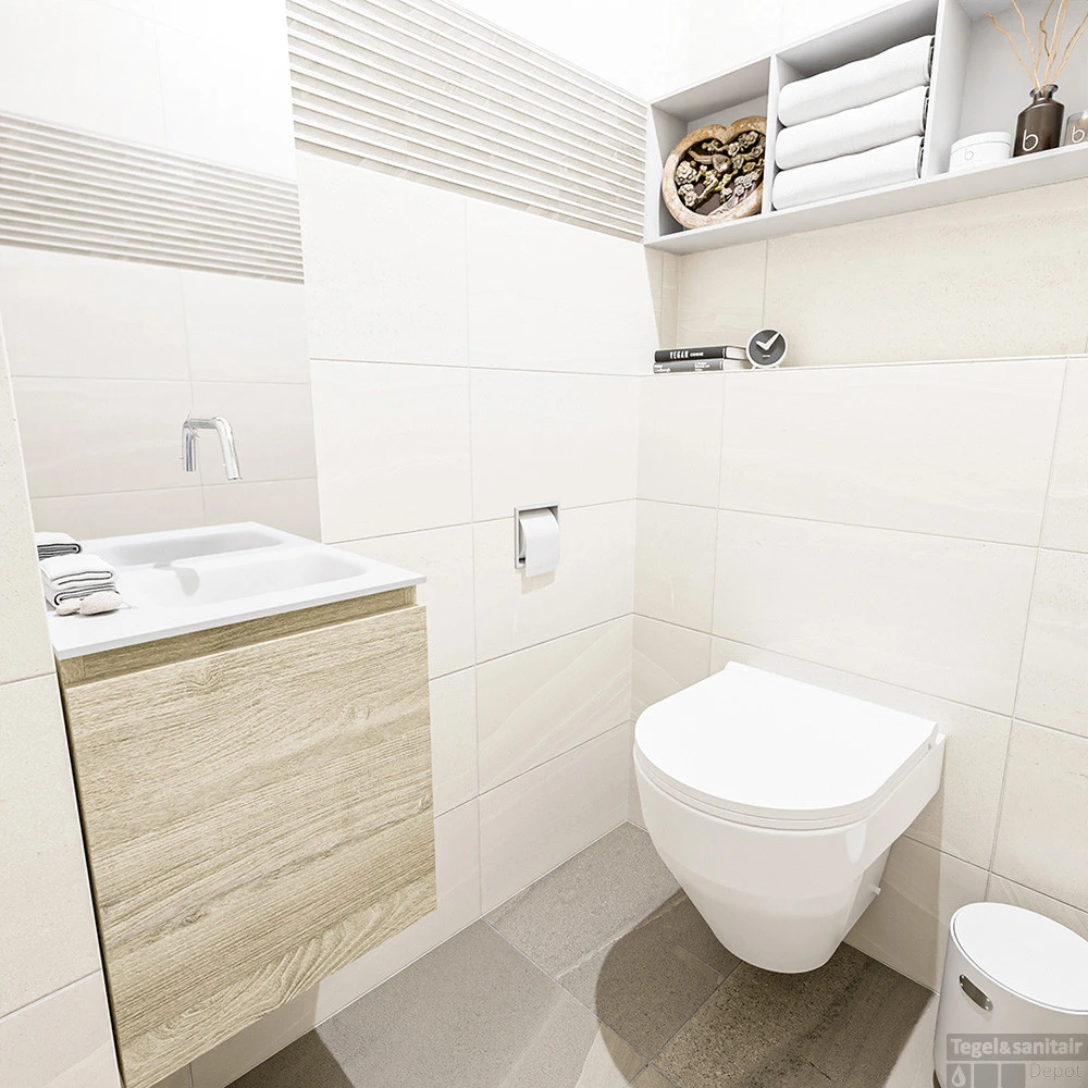 MONDIAZ MONDIAZ OLAN 40cm toiletmeubel light brown grey. LEX wastafel talc rechts geen kraangat
