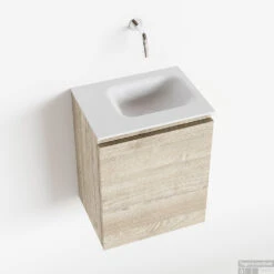 Een mooie combinatie van elegant en rustiek krijg je met het toiletmeubel OLAN! Wat je hier ziet is de vrijhangende onderkast OLAN in 40cm breed met 1 lade in de kleur light brown grey en een solid surface wastafel model LEX in de kleur talc. De positie van de spoelbak is rechts zonder kraangat. In deze toiletmeubel serie hebben wij al meer dan 680 variaties samengesteld! Daarnaast is maatwerk mogelijk.