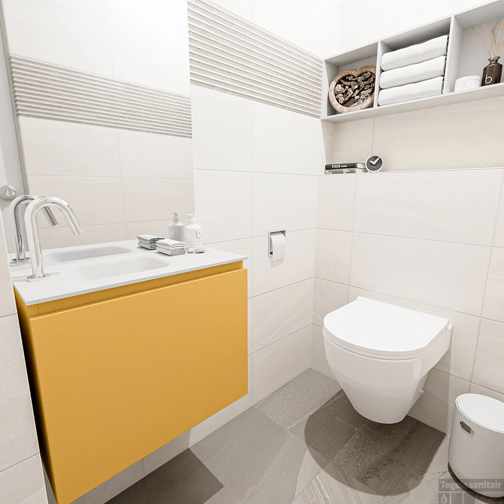MONDIAZ MONDIAZ OLAN 60cm toiletmeubel ocher. LEX wastafel talc links 1 kraangat