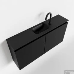 Moderniseer jouw toilet met dit toiletmeubel TURE! Het gaat hier om de vrijhangende onderkast TURE in 100cm breed met 2 deuren in de kleur urban en een solid surface wastafel model EDEN in de kleur urban. De positie van de spoelbak is midden 1 kraangat. In deze toiletmeubel serie hebben wij al meer dan 680 variaties samengesteld! Daarnaast is maatwerk mogelijk.