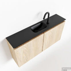 Moderniseer jouw toilet met dit toiletmeubel TURE! Het gaat hier om de vrijhangende onderkast TURE in 100cm breed met 2 deuren in de kleur washed oak en een solid surface wastafel model EDEN in de kleur urban. De positie van de spoelbak is midden 1 kraangat. In deze toiletmeubel serie hebben wij al meer dan 680 variaties samengesteld! Daarnaast is maatwerk mogelijk.