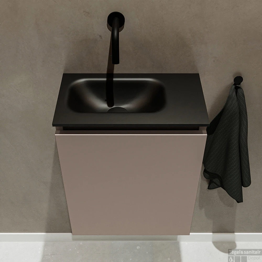 Moderniseer jouw toilet met dit toiletmeubel TURE! Het gaat hier om de vrijhangende onderkast TURE in 40cm breed met 1 deur in de kleur smoke en een solid surface wastafel model EDEN in de kleur urban. De positie van de spoelbak is links zonder kraangat. In deze toiletmeubel serie hebben wij al meer dan 680 variaties samengesteld! Daarnaast is maatwerk mogelijk.