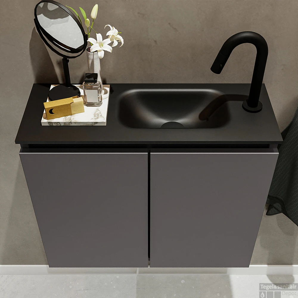 MONDIAZ MONDIAZ TURE 60cm toiletmeubel dark grey. EDEN wastafel urban rechts 1 kraangat