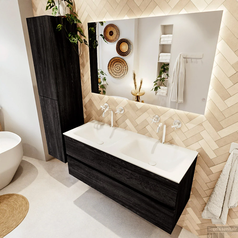 Of u kiest voor kleur of een houtlook, een speciale maat badmeubel, wel of geen kraangaten de badkamermeubel set Vica heeft het allemaal. U heeft bij de Vica badkamermeubel set de keuze uit 3 modellen wastafels de CLOUD en de MOON in Solid Surface met de opties de waskom rechts, links, midden of dubbel en wel of geen kraangaten. En de DENIA keramische wastafel met de opties midden en dubbel.