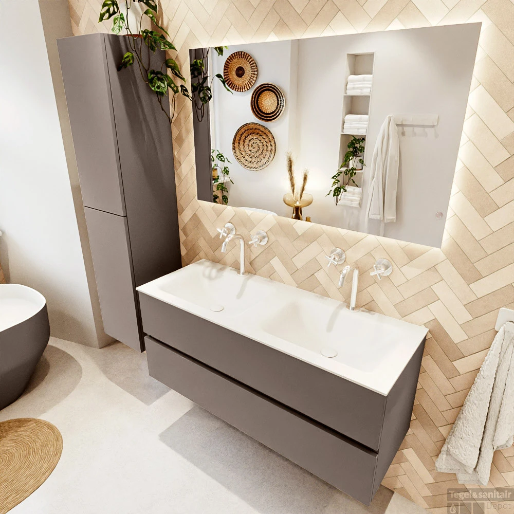 Of u kiest voor kleur of een houtlook, een speciale maat badmeubel, wel of geen kraangaten de badkamermeubel set Vica heeft het allemaal. U heeft bij de Vica badkamermeubel set de keuze uit 3 modellen wastafels de CLOUD en de MOON in Solid Surface met de opties de waskom rechts, links, midden of dubbel en wel of geen kraangaten. En de DENIA keramische wastafel met de opties midden en dubbel.