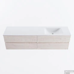Of u kiest voor kleur of een houtlook, een speciale maat badmeubel, wel of geen kraangaten de badkamermeubel set Vica heeft het allemaal. U heeft bij de Vica badkamermeubel set de keuze uit 3 modellen wastafels de CLOUD en de MOON in Solid Surface met de opties de waskom rechts, links, midden of dubbel en wel of geen kraangaten. En de DENIA keramische wastafel met de opties midden en dubbel.